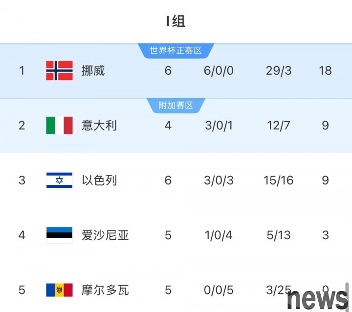 In the 7th round of Group I of the European Group Stage of the World Cup Qualifiers, Norway defeated Israel 5-0 at home, winning 6 consecutive games and ranking first in Group I with 18 points.