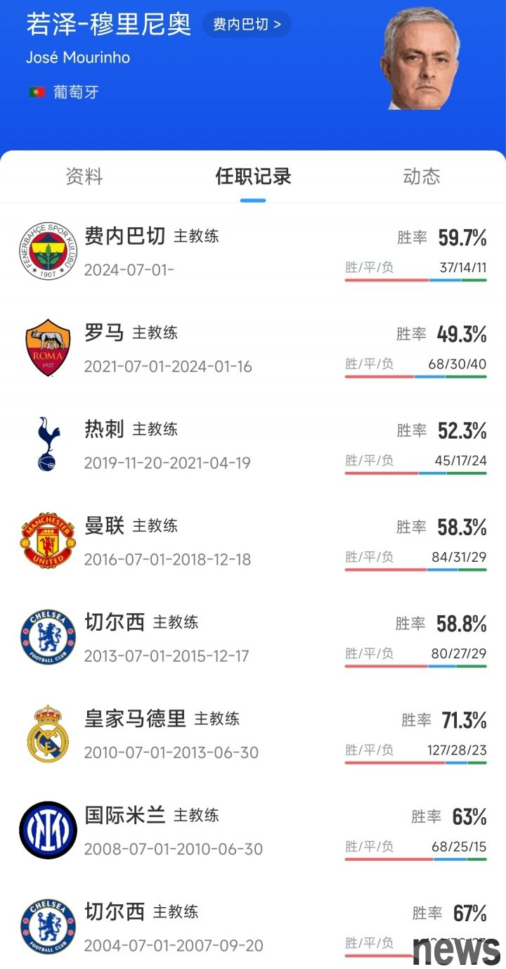 Fenerbache officially announced that the team's coach Mourinho resigned. Within one year of coaching Fenerbache, Mourinho led the team to the UEFA Champions League qualifiers twice and won the league runner-up.