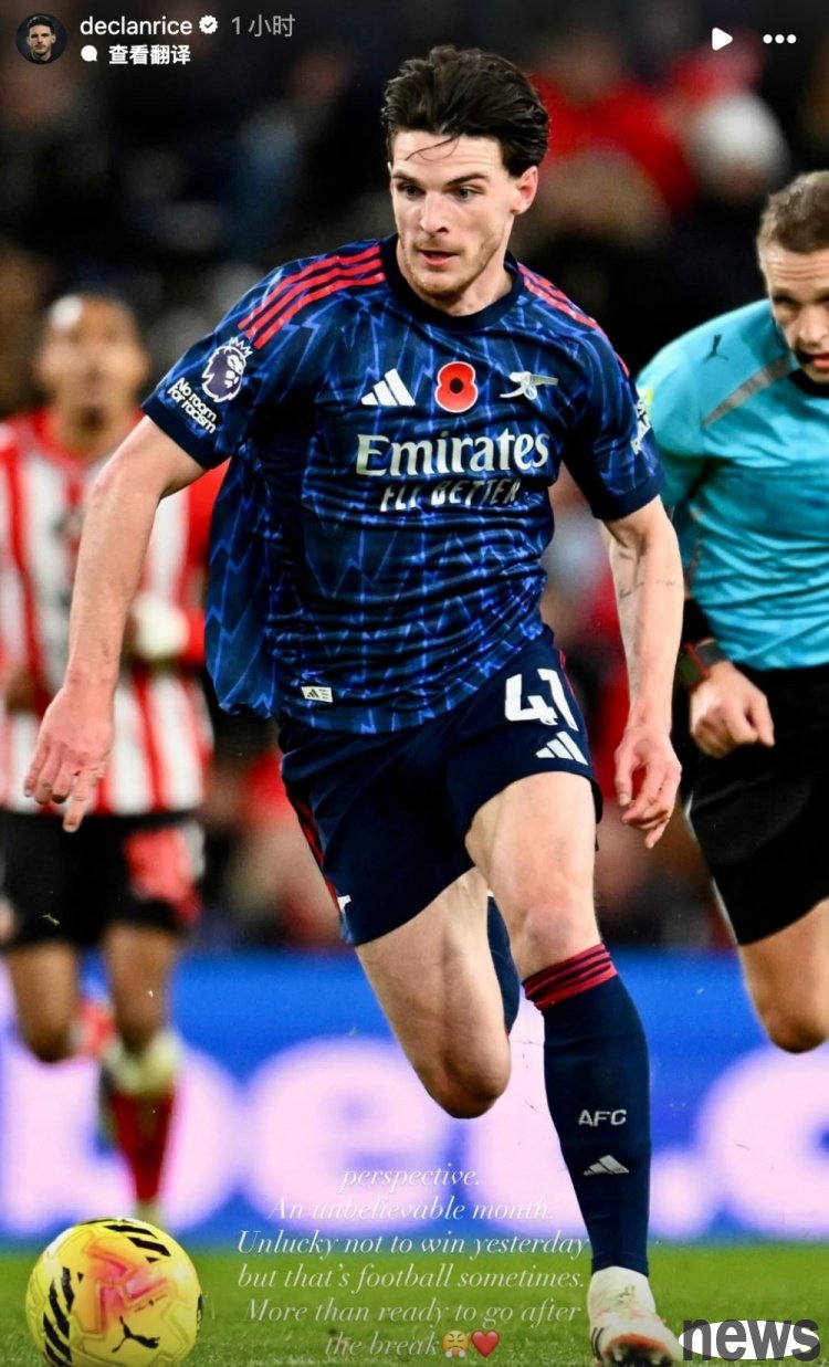 In the 11th round of the Premier League, Arsenal drew 2-2 away with Sunderland. The Gunners' 10-game winning streak in all competitions came to an abrupt end. After the game, Arsenal midfielder Rice updated social media to express his regret for...