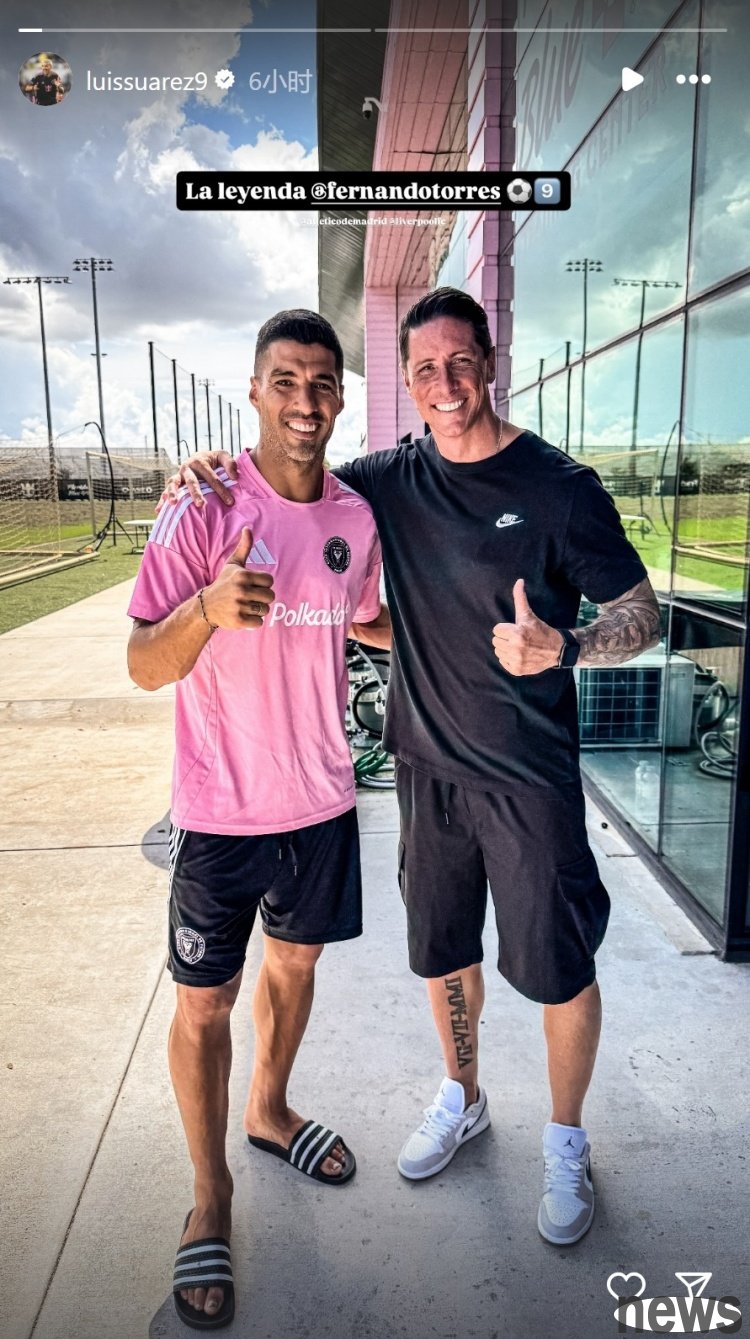 Torres visited Miami International Club and took a photo with Suarez. Suarez posted a photo with the caption "Legend" and @Atletico Madrid and Liverpool.